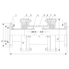 D型大撓度松套補償接頭是在吸收國外的先進技術并結合我國實情基礎上研究開發(fā)的一種新型管道連接器。其主要結構有短管法蘭、壓蓋、滑動管和密封裝置等組成。它采用獨特的抗軸力設計,結構簡單、密封性能可靠、抗拉脫力強。具有較大的可撓量和伸縮量,用于吸收軸向位移和撓度為6°~7°的角位移的管道松套連接的裝置。適用于工況惡劣、地形復雜場合的管線。